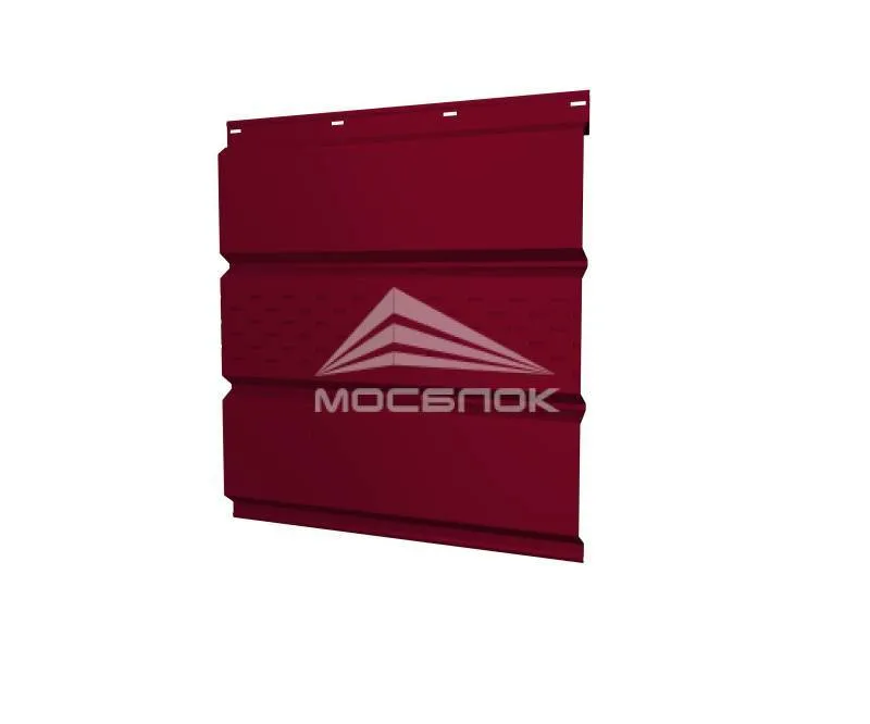 Софит Grand Line металлический центральная перфорация 0,45 PE с пленкой RAL 3003 рубиново-красный — незаменимый элемент, сочетающий в себе функциональность и эстетику. Правильный выбор материала и профессиональный монтаж позволяют увеличить срок службы кровли, повысить энергоэффективность и создать привлекательный внешний вид здания. Компания "МОСБЛОК", предлагают широкий ассортимент качественных софитов, которые можно подобрать под любые требования и бюджет. Обратитесь к экспертам, чтобы ваш дом не только выглядел красиво, но и был защищен от негативных воздействий окружающей среды на долгие годы. Покупка софитов — это отличный способ придать вашему дому завершенный и современный вид, одновременно обеспечив надежную защиту кровли и улучшенную вентиляцию подкровельного пространства. Представьте себе уютный карниз, аккуратно облицованный перфорированными алюминиевыми панелями, которые не только гармонично вписываются в архитектурный стиль, но и служат надежной преградой для пыли, насекомых и влаги. Софит Grand Line металлический центральная перфорация 0,45 PE с пленкой RAL 3003 рубиново-красный купить в городе Москва