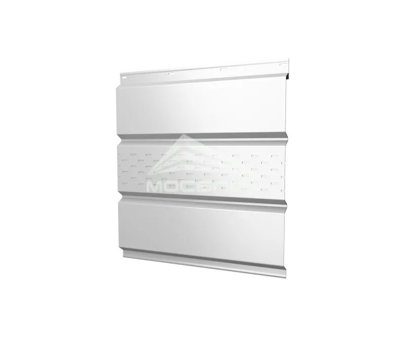 Софит Grand Line металлический центральная перфорация 0,45 Drap TX с пленкой RAL 9003 сигнальный белый — незаменимый элемент, сочетающий в себе функциональность и эстетику. Правильный выбор материала и профессиональный монтаж позволяют увеличить срок службы кровли, повысить энергоэффективность и создать привлекательный внешний вид здания. Компания "МОСБЛОК", предлагают широкий ассортимент качественных софитов, которые можно подобрать под любые требования и бюджет. Обратитесь к экспертам, чтобы ваш дом не только выглядел красиво, но и был защищен от негативных воздействий окружающей среды на долгие годы. Покупка софитов — это отличный способ придать вашему дому завершенный и современный вид, одновременно обеспечив надежную защиту кровли и улучшенную вентиляцию подкровельного пространства. Представьте себе уютный карниз, аккуратно облицованный перфорированными алюминиевыми панелями, которые не только гармонично вписываются в архитектурный стиль, но и служат надежной преградой для пыли, насекомых и влаги. Софит Grand Line металлический центральная перфорация 0,45 Drap TX с пленкой RAL 9003 сигнальный белый купить в городе Москва