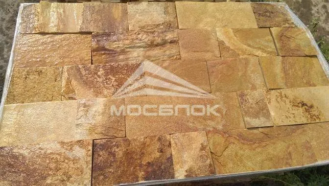 Златолит пиленый – это достаточно прочный и долговечный камень. Природный камень добывается в Башкирии,а также Челябинской и Оренбургской области из Уральских гор. В златолите содержится золото и серебро. Сам материал применяется для внутренней облицовки стен, балконов, оформления арок, а также для наружной облицовки стен фасадов, цоколей и заборов. Златолит имеет уникальное свойство – находясь постоянно в воде, он не теряет своей прочности.