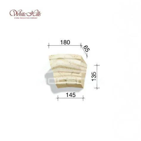 Радиальный элемент 735-X1 – 739-X1 – R525 White Hills – это элемент забора, предназначенный для защиты его верхней части от атмосферных осадков и придания ему завершенного, эстетичного вида. Изготовленная из высококачественного бетона с имитацией натурального камня, она не только выполняет защитную функцию, но и является важным элементом дизайна ограждения в городе Москва.