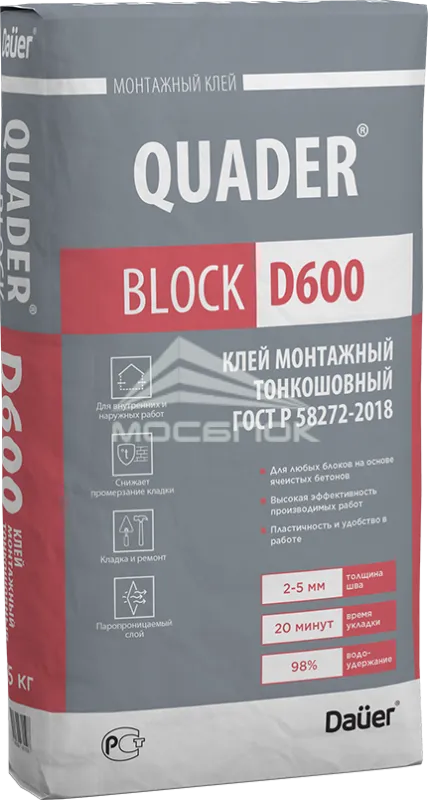 Для возведения стен и перегородок из блоков на основе газо- и пенобетона, силикатного пенобетона, полистиролбетона и других ячеистых блоков. Допускается заделка сколов, трещин, швов, выбоин на поверхности блоков глубиной до 20 мм. Для внутренних и наружных работ.