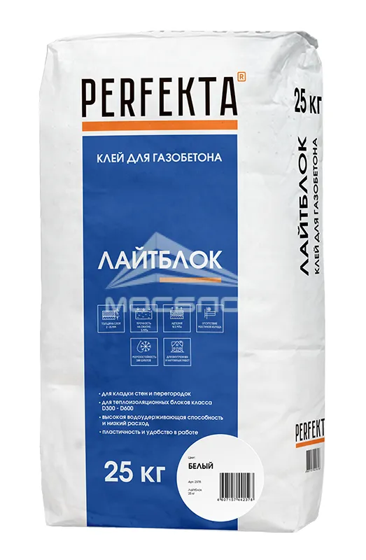 Клей для газобетона Perfekta Лайтблок белый, 25 кг