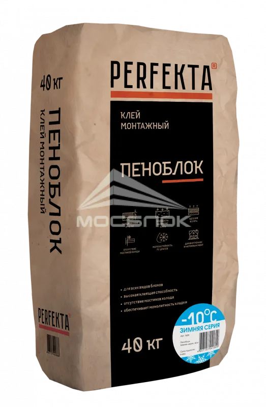 Клей для газобетона Perfekta Пеноблок Зимняя серия, 40 кг