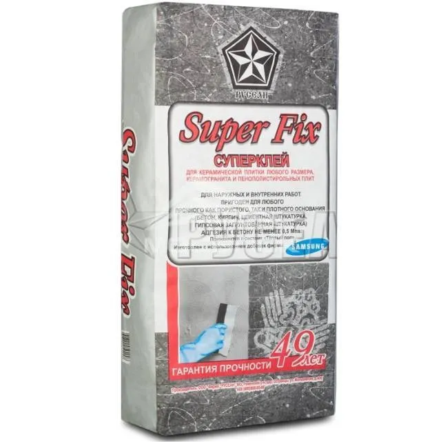 Клей для плитки Superfix 25 кг Русеан в городе Москва — это профессиональный клей для укладки керамической, керамогранитной, натуральной и искусственной каменной плитки, разработанный ведущими производителями строительных материалов. Его формула основана на высококачественных цементах с добавками, обеспечивающими отличную адгезию, пластичность и долговечность. Одной из ключевых особенностей клея производителя Русеан является его универсальность: он подходит как для внутренних, так и для наружных работ, а также для укладки на различные основания — бетон, цементно-стружечные плиты, гипсокартон, старое покрытие и даже системы утепления. Преимущества этого клея подтверждены многолетним опытом специалистов и отзывами довольных клиентов. Он обладает отличной ценой и качеством, что делает его оптимальным выбором как для профессиональных подрядчиков, так и для домашних мастеров, стремящихся к долговечности и эстетике.