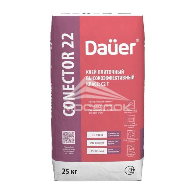Клей плиточный Dauer CONECTOR 22 высокоэффективный С2 T 25 кг. Технические характеристики и преимущества: