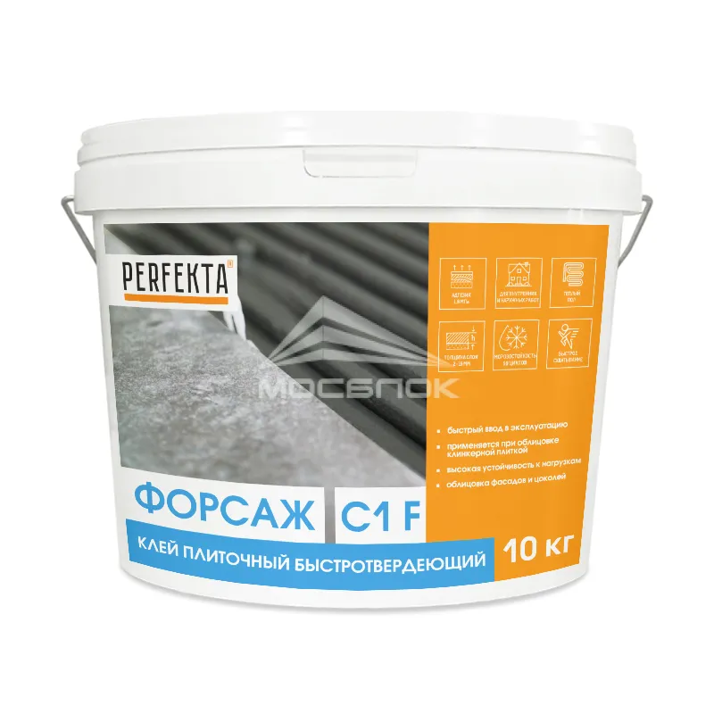 Клей плиточный Perfekta быстротвердеющий Форсаж C1 F, 10 кг. Технические характеристики и преимущества: