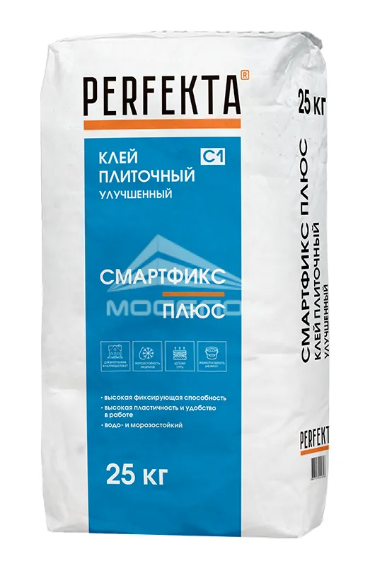 Клей плиточный Perfekta Смартфикс Плюс C1, 25 кг в городе Москва — это профессиональный клей для укладки керамической, керамогранитной, натуральной и искусственной каменной плитки, разработанный ведущими производителями строительных материалов. Его формула основана на высококачественных цементах с добавками, обеспечивающими отличную адгезию, пластичность и долговечность. Одной из ключевых особенностей клея производителя Perfekta является его универсальность: он подходит как для внутренних, так и для наружных работ, а также для укладки на различные основания — бетон, цементно-стружечные плиты, гипсокартон, старое покрытие и даже системы утепления. Преимущества этого клея подтверждены многолетним опытом специалистов и отзывами довольных клиентов. Он обладает отличной ценой и качеством, что делает его оптимальным выбором как для профессиональных подрядчиков, так и для домашних мастеров, стремящихся к долговечности и эстетике.