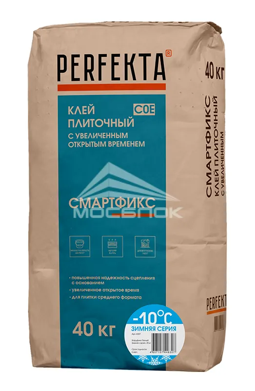 Клей плиточный Perfekta Смартфикс СО Е Зимняя серия, 40 кг в городе Москва — это профессиональный клей для укладки керамической, керамогранитной, натуральной и искусственной каменной плитки, разработанный ведущими производителями строительных материалов. Его формула основана на высококачественных цементах с добавками, обеспечивающими отличную адгезию, пластичность и долговечность. Одной из ключевых особенностей клея производителя Perfekta является его универсальность: он подходит как для внутренних, так и для наружных работ, а также для укладки на различные основания — бетон, цементно-стружечные плиты, гипсокартон, старое покрытие и даже системы утепления. Преимущества этого клея подтверждены многолетним опытом специалистов и отзывами довольных клиентов. Он обладает отличной ценой и качеством, что делает его оптимальным выбором как для профессиональных подрядчиков, так и для домашних мастеров, стремящихся к долговечности и эстетике.