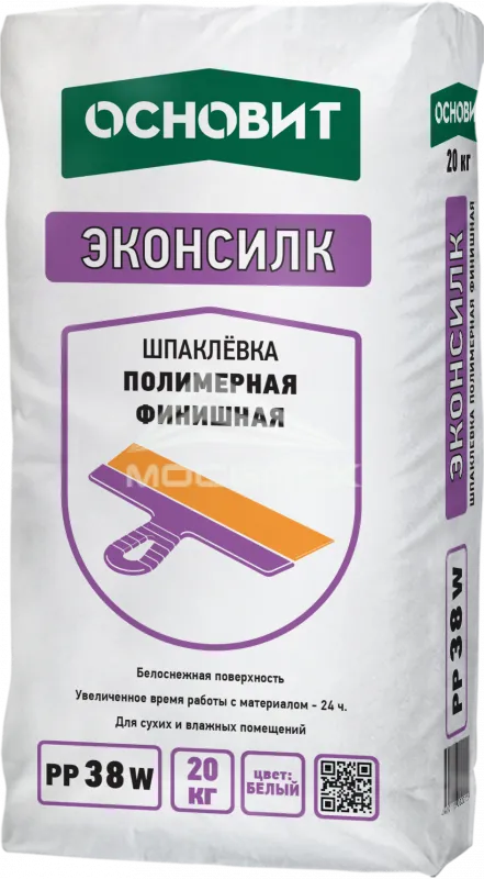 Шпаклевка олимерная финишная ЭКОНСИЛК PP38 W, 20 кг Основит основные преимущества: