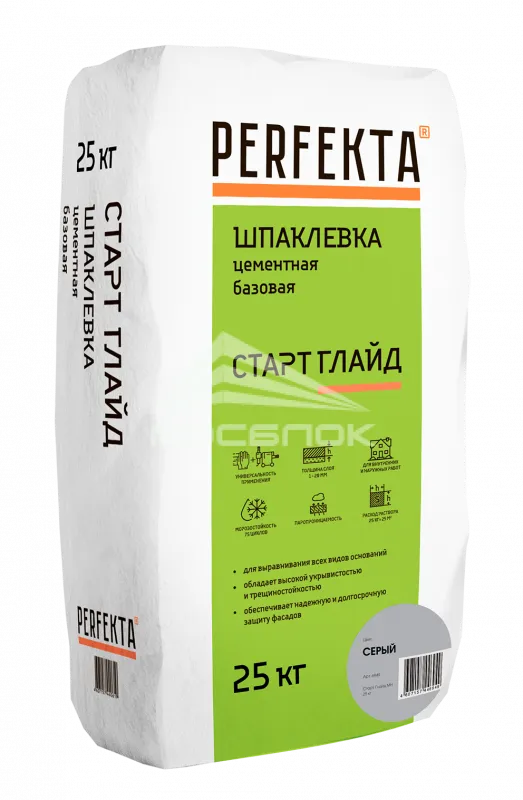 Шпаклевка Perfekta цементная базовая Старт Глайд МН серый, 25 кг основные преимущества: