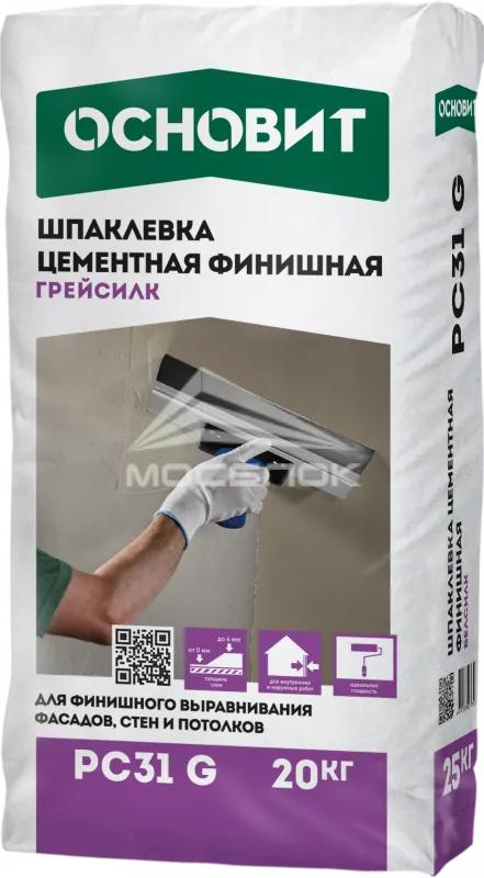 Шпаклевка цементная финишная ГРЕЙСИЛК PC31 G Основит в городе Москва — это надежное и универсальное решение для достижения идеально гладкой поверхности стен и потолков. Благодаря своим уникальным свойствам она становится незаменимым инструментом в арсенале как профессиональных строителей, так и домашних мастеров. Эта шпаклевка обеспечивает отличное сцепление с различными материалами, что подтверждается её высокой адгезией, позволяющей использовать ее на гипсокартоне, кирпичных и бетонных поверхностях. Например, при нанесении слоя толщиной всего в 1 мм она создает идеально ровную поверхность, что значительно облегчает последующую отделку — будь то покраска или оклейка обоями.
