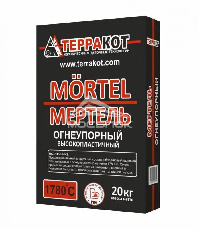 Мертель огнеупорный высокопластичный - профессиональный кладочный состав, обогащенный оксидом алюминия, обладающий высокой пластичностью и огнеупорностью не ниже 1780 градусов Цельсия. Смесь применяется для кладки топок из шамотного кирпича и позволяет выполнять межкирпичный шов толщиной 3-8 мм.Жаростойкая, экологически чистая сухая смесь. Сохраняет свои свойства при нагреве до +1780°С.СОСТАВ: