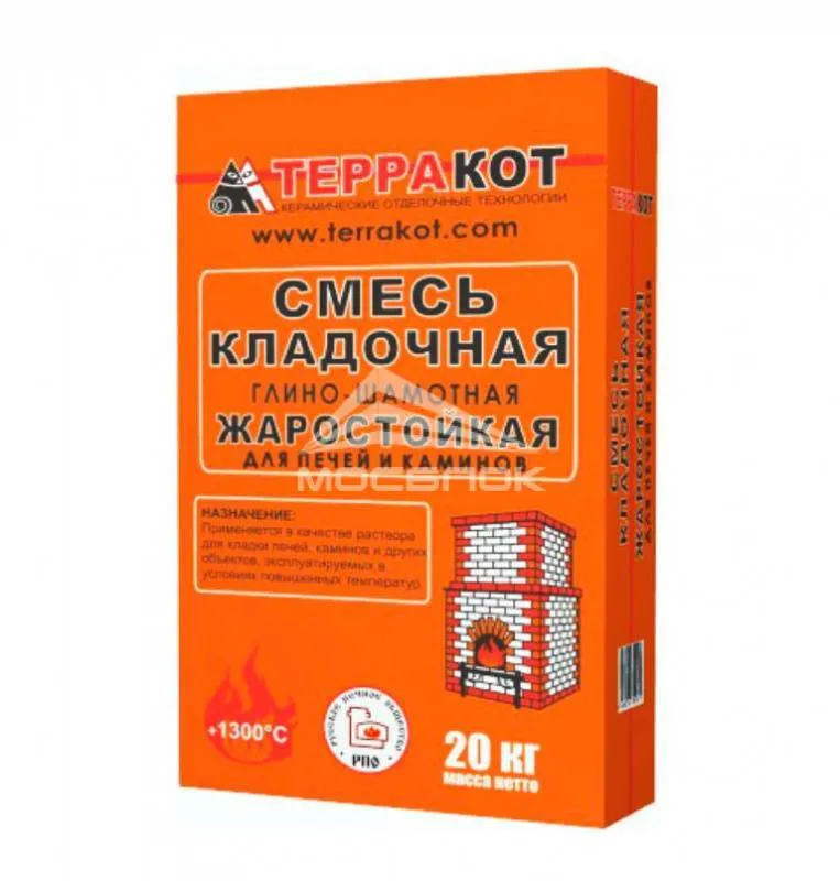 Жаростойкая кладочная смесь «Терракот» — готовый состав для обеспечения высококачественной и надежной кладки кирпичей в топочных и иных горячих зонах нагреваемых объектов (печей, каминов, мангалов, барбекю, дымоходов).