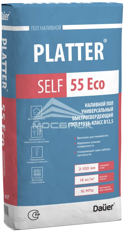 Наливной пол универсальный Dauer PLATTER SELF 55 Eco быстротвердеющий Рк5, Вtb4, В12,5 20 кг
