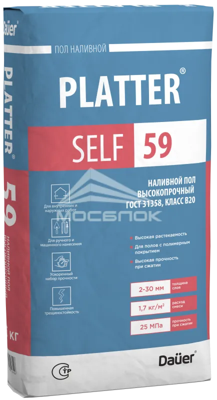 Наливной пол высокопрочный Dauer PLATTER SELF 59, Рк6, Вtb4, В20, F50, 25 кг