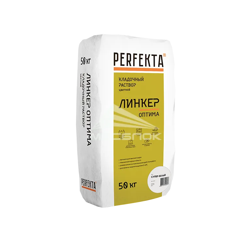 Кладочный раствор Perfekta Линкер Оптима супер-белый, 50 кг — это распространённый строительный материал, используемый для связки кирпича, камня, блоков и других элементов при возведении стен, фасадов, фундаментов и внутренних перегородок города Москва. Высокое качество кладочной смеси производителя Perfekta напрямую влияет на прочность, долговечность и эксплуатационные характеристики сооружения. Благодаря тщательно подобранной рецептуре, такая смесь обеспечивает равномерное распределение нагрузки, минимизирует образование трещин и деформаций, а также способствует быстрому схватыванию и повышенной прочности кладки.