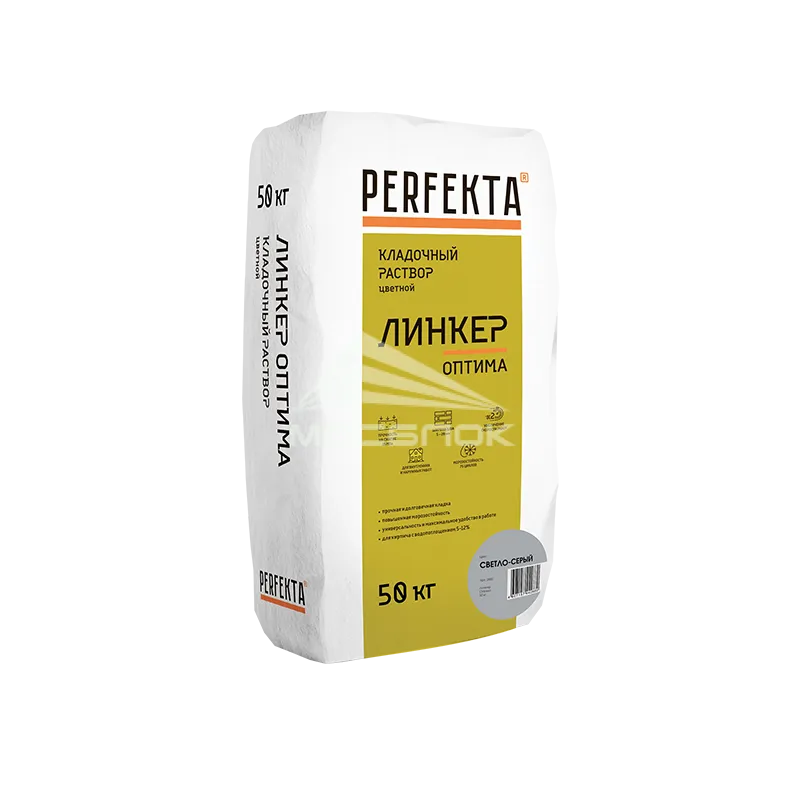 Кладочный раствор Perfekta Линкер Оптима светло-серый, 50 кг — это распространённый строительный материал, используемый для связки кирпича, камня, блоков и других элементов при возведении стен, фасадов, фундаментов и внутренних перегородок города Москва. Высокое качество кладочной смеси производителя Perfekta напрямую влияет на прочность, долговечность и эксплуатационные характеристики сооружения. Благодаря тщательно подобранной рецептуре, такая смесь обеспечивает равномерное распределение нагрузки, минимизирует образование трещин и деформаций, а также способствует быстрому схватыванию и повышенной прочности кладки.