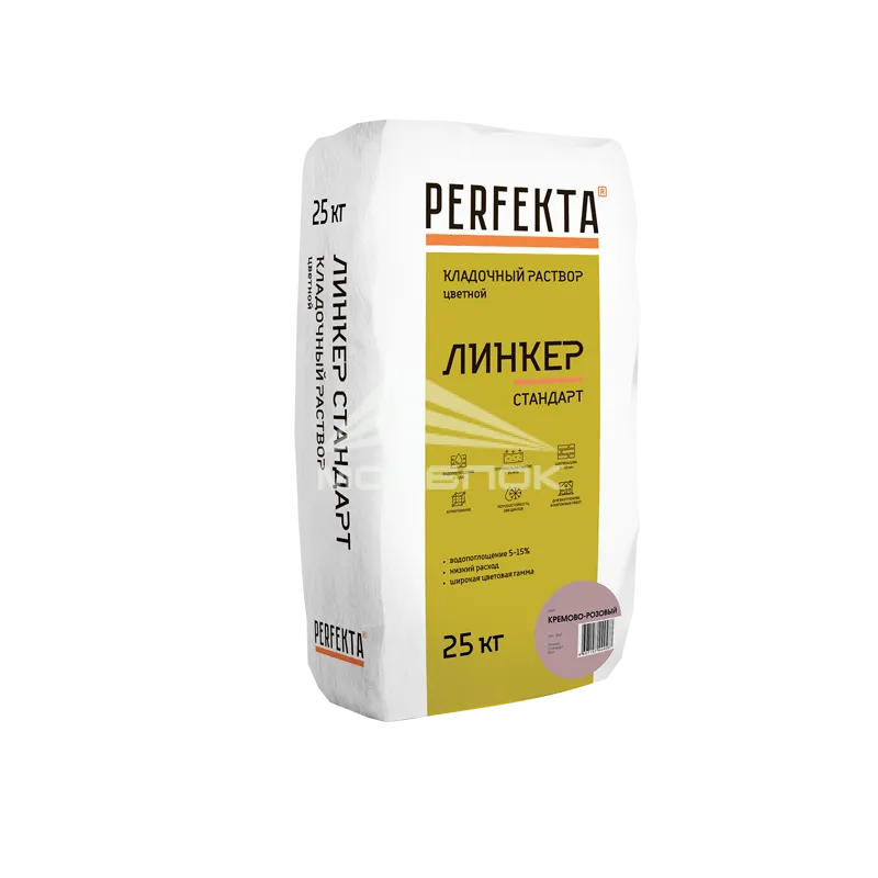 Кладочный раствор Perfekta Линкер Стандарт кремово-розовый, 25 кг — это фундамент любого кирпичного или каменного сооружения. Правильный подбор состава, пропорций и соблюдение технологий позволяют добиться высокой прочности, долговечности и эстетики зданий. Современные добавки и технологии позволяют оптимизировать расход материалов и повысить эксплуатационные характеристики кладочных смесей производителя Perfekta.