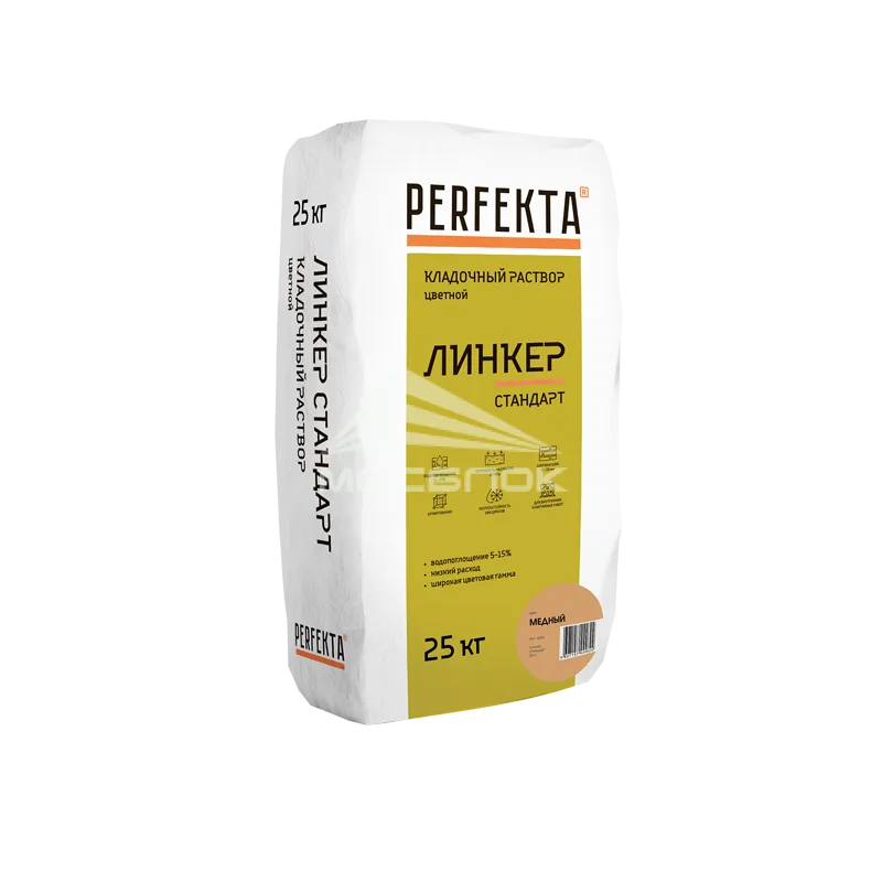Кладочный раствор Perfekta Линкер Стандарт медный, 25 кг — это распространённый строительный материал, используемый для связки кирпича, камня, блоков и других элементов при возведении стен, фасадов, фундаментов и внутренних перегородок города Москва. Высокое качество кладочной смеси производителя Perfekta напрямую влияет на прочность, долговечность и эксплуатационные характеристики сооружения. Благодаря тщательно подобранной рецептуре, такая смесь обеспечивает равномерное распределение нагрузки, минимизирует образование трещин и деформаций, а также способствует быстрому схватыванию и повышенной прочности кладки.
