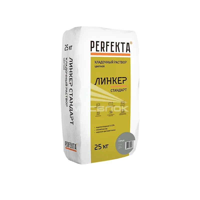 Кладочный раствор Perfekta Линкер Стандарт серый, 25 кг — это распространённый строительный материал, используемый для связки кирпича, камня, блоков и других элементов при возведении стен, фасадов, фундаментов и внутренних перегородок города Москва. Высокое качество кладочной смеси производителя Perfekta напрямую влияет на прочность, долговечность и эксплуатационные характеристики сооружения. Благодаря тщательно подобранной рецептуре, такая смесь обеспечивает равномерное распределение нагрузки, минимизирует образование трещин и деформаций, а также способствует быстрому схватыванию и повышенной прочности кладки.