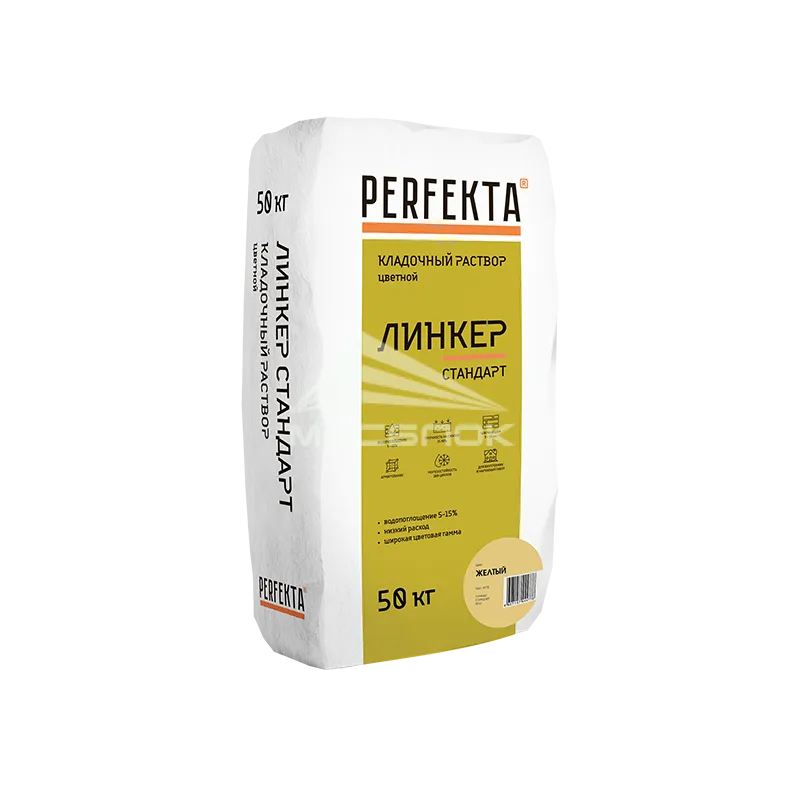 Кладочный раствор Perfekta Линкер Стандарт желтый, 50 кг — это распространённый строительный материал, используемый для связки кирпича, камня, блоков и других элементов при возведении стен, фасадов, фундаментов и внутренних перегородок города Москва. Высокое качество кладочной смеси производителя Perfekta напрямую влияет на прочность, долговечность и эксплуатационные характеристики сооружения. Благодаря тщательно подобранной рецептуре, такая смесь обеспечивает равномерное распределение нагрузки, минимизирует образование трещин и деформаций, а также способствует быстрому схватыванию и повышенной прочности кладки.