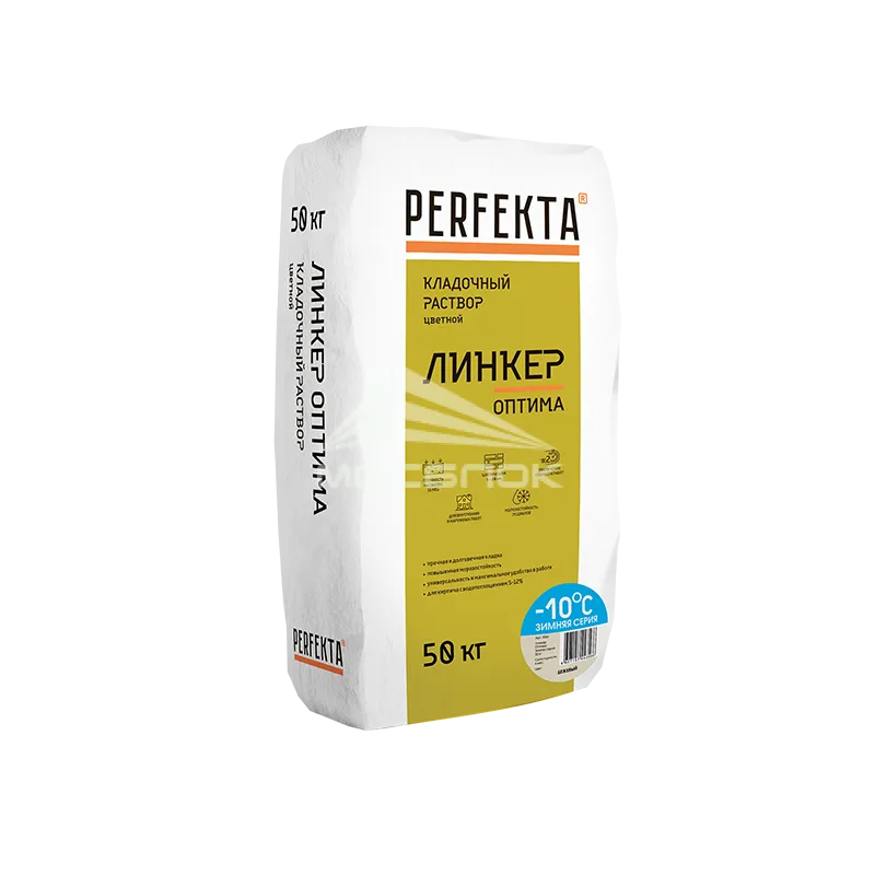 Кладочный раствор Perfekta Линкер Оптима Зимняя серия бежевый, 50 кг — это распространённый строительный материал, используемый для связки кирпича, камня, блоков и других элементов при возведении стен, фасадов, фундаментов и внутренних перегородок города Москва. Высокое качество кладочной смеси производителя Perfekta зима напрямую влияет на прочность, долговечность и эксплуатационные характеристики сооружения. Благодаря тщательно подобранной рецептуре, такая смесь обеспечивает равномерное распределение нагрузки, минимизирует образование трещин и деформаций, а также способствует быстрому схватыванию и повышенной прочности кладки.