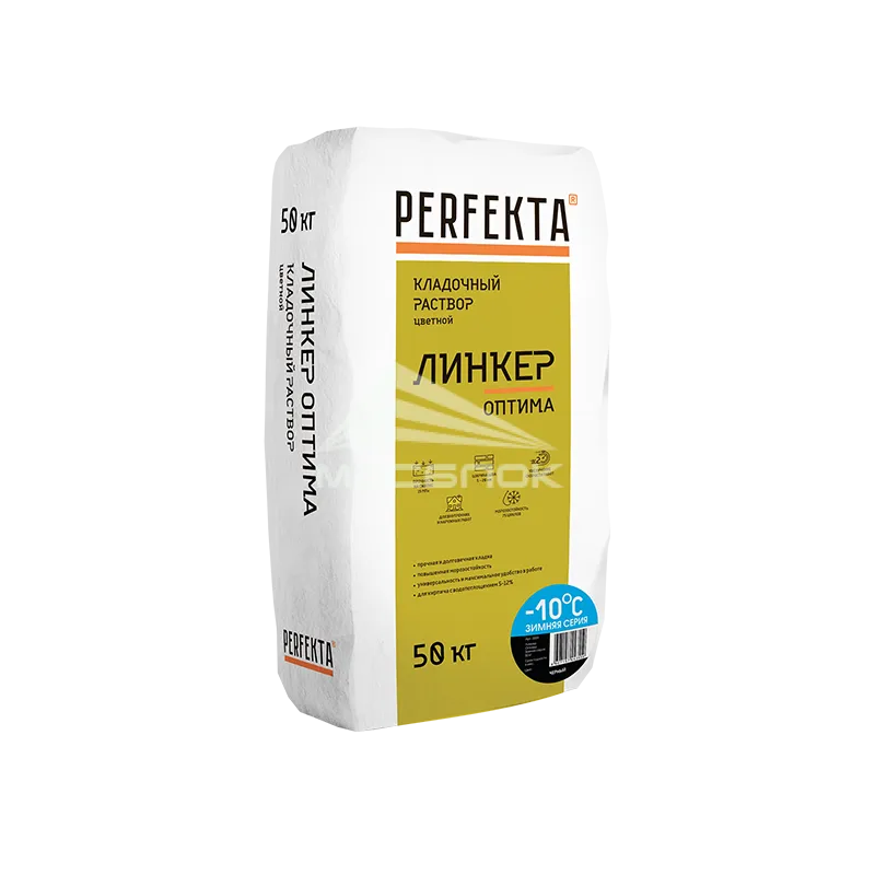 Кладочный раствор Perfekta Линкер Оптима Зимняя серия черный, 50 кг — это распространённый строительный материал, используемый для связки кирпича, камня, блоков и других элементов при возведении стен, фасадов, фундаментов и внутренних перегородок города Москва. Высокое качество кладочной смеси производителя Perfekta зима напрямую влияет на прочность, долговечность и эксплуатационные характеристики сооружения. Благодаря тщательно подобранной рецептуре, такая смесь обеспечивает равномерное распределение нагрузки, минимизирует образование трещин и деформаций, а также способствует быстрому схватыванию и повышенной прочности кладки.