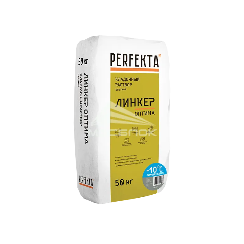 Кладочный раствор Perfekta Линкер Оптима Зимняя серия серый, 50 кг — это распространённый строительный материал, используемый для связки кирпича, камня, блоков и других элементов при возведении стен, фасадов, фундаментов и внутренних перегородок города Москва. Высокое качество кладочной смеси производителя Perfekta зима напрямую влияет на прочность, долговечность и эксплуатационные характеристики сооружения. Благодаря тщательно подобранной рецептуре, такая смесь обеспечивает равномерное распределение нагрузки, минимизирует образование трещин и деформаций, а также способствует быстрому схватыванию и повышенной прочности кладки.