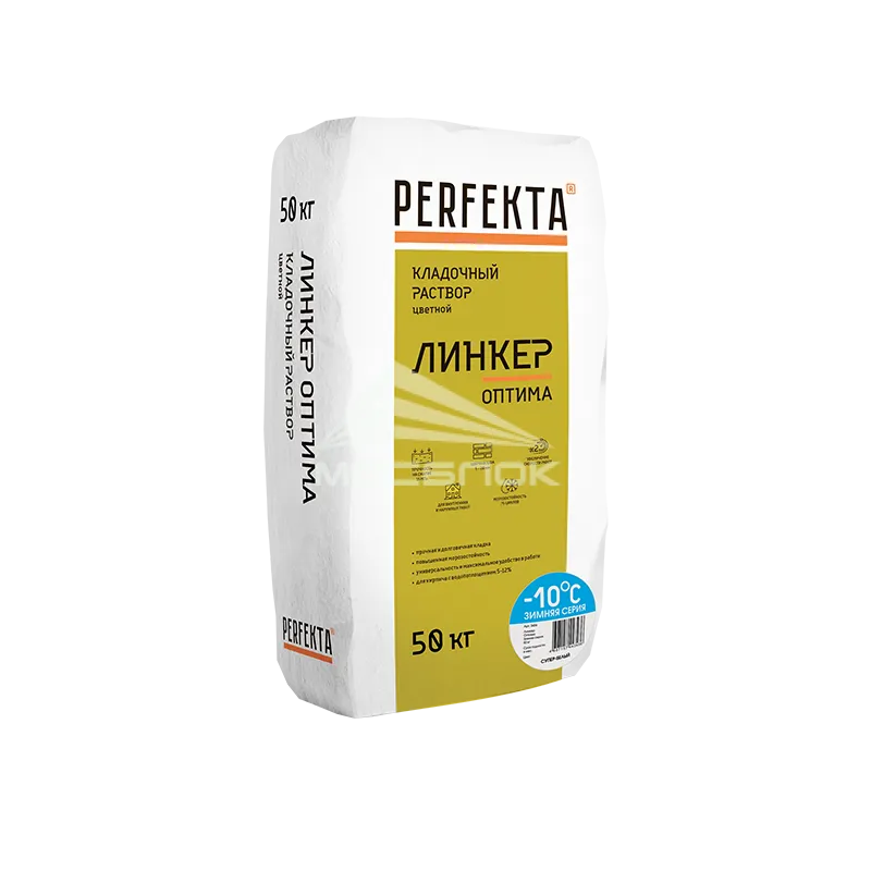 Кладочный раствор Perfekta Линкер Оптима Зимняя серия супер-белый, 50 кг — это распространённый строительный материал, используемый для связки кирпича, камня, блоков и других элементов при возведении стен, фасадов, фундаментов и внутренних перегородок города Москва. Высокое качество кладочной смеси производителя Perfekta зима напрямую влияет на прочность, долговечность и эксплуатационные характеристики сооружения. Благодаря тщательно подобранной рецептуре, такая смесь обеспечивает равномерное распределение нагрузки, минимизирует образование трещин и деформаций, а также способствует быстрому схватыванию и повышенной прочности кладки.
