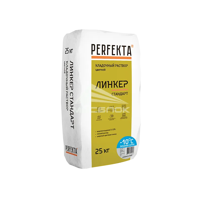 Кладочный раствор Perfekta Линкер Стандарт Зимняя серия серебристо-серый, 25 кг — это распространённый строительный материал, используемый для связки кирпича, камня, блоков и других элементов при возведении стен, фасадов, фундаментов и внутренних перегородок города Москва. Высокое качество кладочной смеси производителя Perfekta зима напрямую влияет на прочность, долговечность и эксплуатационные характеристики сооружения. Благодаря тщательно подобранной рецептуре, такая смесь обеспечивает равномерное распределение нагрузки, минимизирует образование трещин и деформаций, а также способствует быстрому схватыванию и повышенной прочности кладки.