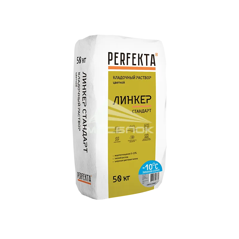 Кладочный раствор Perfekta Линкер Стандарт Зимняя серия светло-серый, 50 кг — это распространённый строительный материал, используемый для связки кирпича, камня, блоков и других элементов при возведении стен, фасадов, фундаментов и внутренних перегородок города Москва. Высокое качество кладочной смеси производителя Perfekta зима напрямую влияет на прочность, долговечность и эксплуатационные характеристики сооружения. Благодаря тщательно подобранной рецептуре, такая смесь обеспечивает равномерное распределение нагрузки, минимизирует образование трещин и деформаций, а также способствует быстрому схватыванию и повышенной прочности кладки.
