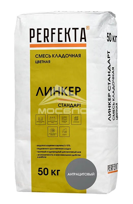 Кладочный раствор Perfekta Линкер Стандарт антрацитовый, 50 кг — это распространённый строительный материал, используемый для связки кирпича, камня, блоков и других элементов при возведении стен, фасадов, фундаментов и внутренних перегородок города Москва. Высокое качество кладочной смеси производителя Perfekta зима напрямую влияет на прочность, долговечность и эксплуатационные характеристики сооружения. Благодаря тщательно подобранной рецептуре, такая смесь обеспечивает равномерное распределение нагрузки, минимизирует образование трещин и деформаций, а также способствует быстрому схватыванию и повышенной прочности кладки.
