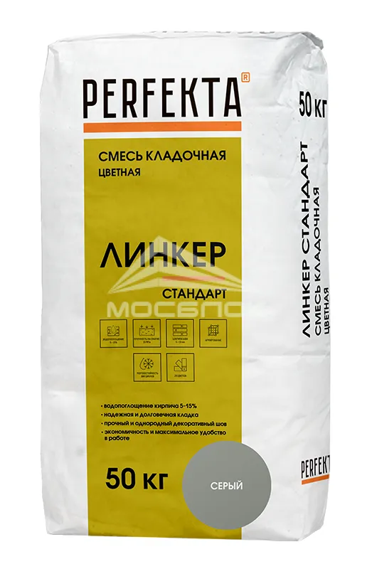 Кладочный раствор Perfekta Линкер Стандарт серый, 50 кг — это распространённый строительный материал, используемый для связки кирпича, камня, блоков и других элементов при возведении стен, фасадов, фундаментов и внутренних перегородок города Москва. Высокое качество кладочной смеси производителя Perfekta напрямую влияет на прочность, долговечность и эксплуатационные характеристики сооружения. Благодаря тщательно подобранной рецептуре, такая смесь обеспечивает равномерное распределение нагрузки, минимизирует образование трещин и деформаций, а также способствует быстрому схватыванию и повышенной прочности кладки.