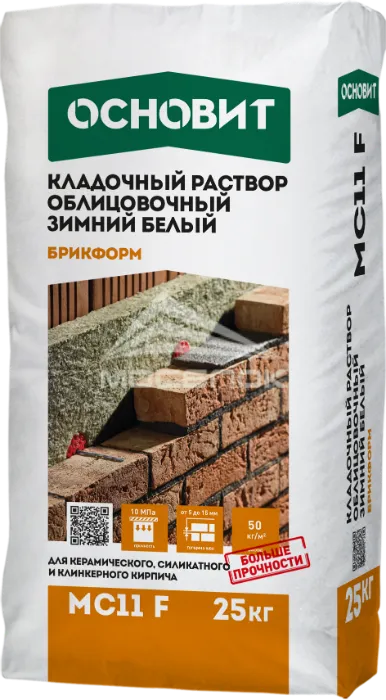 Цветной кладочный раствор белый 010 ОСНОВИТ БРИКФОРМ MC11 F ЗИМНИЙ — это распространённый строительный материал, используемый для связки кирпича, камня, блоков и других элементов при возведении стен, фасадов, фундаментов и внутренних перегородок города Москва. Высокое качество кладочной смеси производителя Основит напрямую влияет на прочность, долговечность и эксплуатационные характеристики сооружения. Благодаря тщательно подобранной рецептуре, такая смесь обеспечивает равномерное распределение нагрузки, минимизирует образование трещин и деформаций, а также способствует быстрому схватыванию и повышенной прочности кладки.