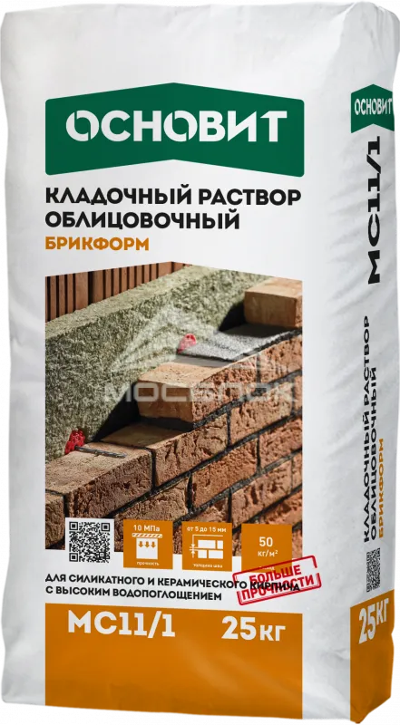 Цветной кладочный раствор коричневый 040 ОСНОВИТ БРИКФОРМ MC-11/1 (Т-111) — это фундамент любого кирпичного или каменного сооружения. Правильный подбор состава, пропорций и соблюдение технологий позволяют добиться высокой прочности, долговечности и эстетики зданий. Современные добавки и технологии позволяют оптимизировать расход материалов и повысить эксплуатационные характеристики кладочных смесей производителя Основит.