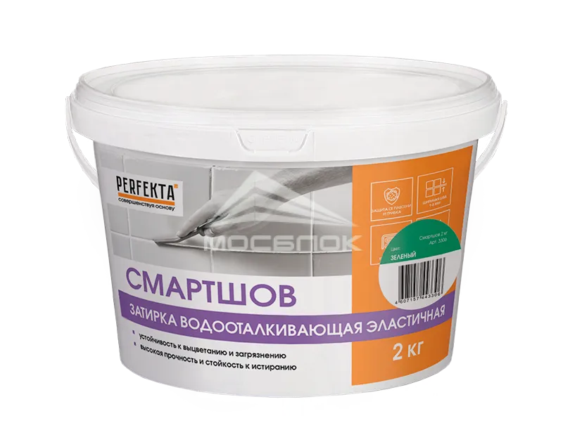 Затирка для плитки Perfekta Смартшов зеленый, 2 кг — это современное и надежное решение для профессиональных и домашних ремонтов, сочетающее в себе высокие технические характеристики и широкий выбор цветовых решений.