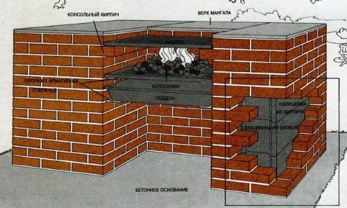 Схема мангала из кирпича.