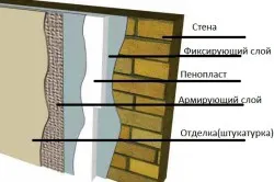 Схема утепления кирпичной стены снаружи пенопластом.