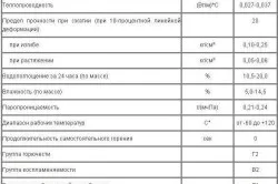 Таблица характеристик минеральной ваты.