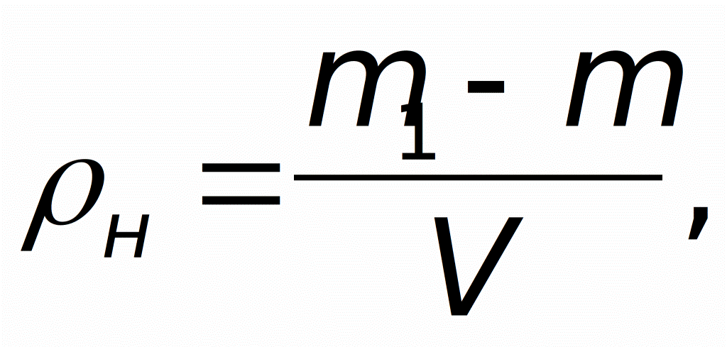 Далее, сосуд взвешивается два раза, когда в нем имеется вещество и когда его нет. Плотность насыпная высчитывается по формуле: Pн = ( m2 m1)/V. В ней значения m1, m2 определяют массу сосуда как пустого, так и наполненного, а V объем емкости.